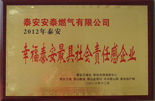 2012年幸福泰安最具社會(huì)責(zé)任感企業(yè)