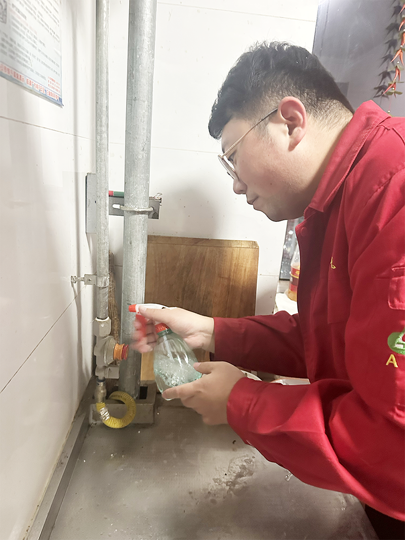 3.日常可用肥皂水或洗潔精水噴涂在燃?xì)夤艿赖慕宇^、閥門及燃?xì)忾_(kāi)關(guān)等連接處進(jìn)行自檢自查,若有冒泡,則說(shuō)明有漏氣。