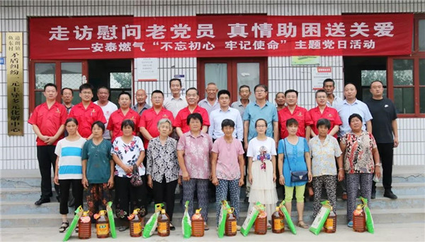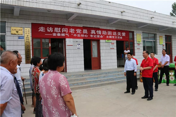 7月25日,泰安安泰燃?xì)庥邢薰鹃_展“不忘初心送關(guān)愛 組織關(guān)懷暖人心”主題黨日活動。泰山玻纖黨委委員、副總經(jīng)理、安泰燃?xì)舛麻L趙恒剛帶領(lǐng)公司班子成員、支部委員、黨員骨干分別走進滿莊鎮(zhèn)敬老院和道朗鎮(zhèn)魚東村,以實際行動向退伍老黨員做出的貢獻表示敬意,把積極助困的國企社會責(zé)任和中華民族尊老愛老的傳統(tǒng)美德落到實處。