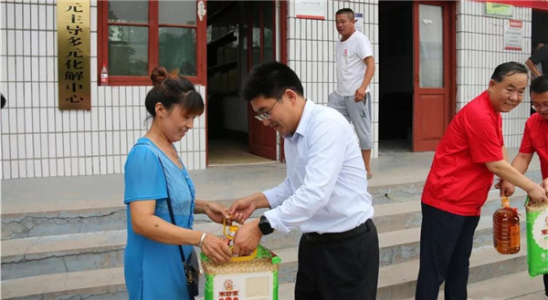 10點鐘,道朗鎮(zhèn)黨委副書記、鎮(zhèn)長李安軍等人與趙恒剛一行與共同為魚東村退伍老黨員和困難群眾送上花生油、大米等慰問品。慰問中,趙恒剛詳細(xì)詢問、了解他們生活中存在的困難和問題,并囑咐他們有困難要告訴公司,以便公司及時解決他們生活中的難處,現(xiàn)場群眾備受感動。同時,一行人走進魚東村困難群眾家中,為他們送去生活必需品和誠摯問候。